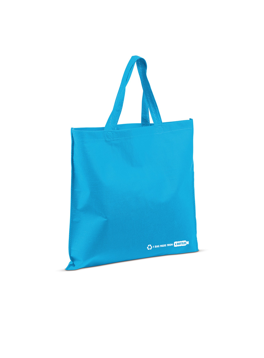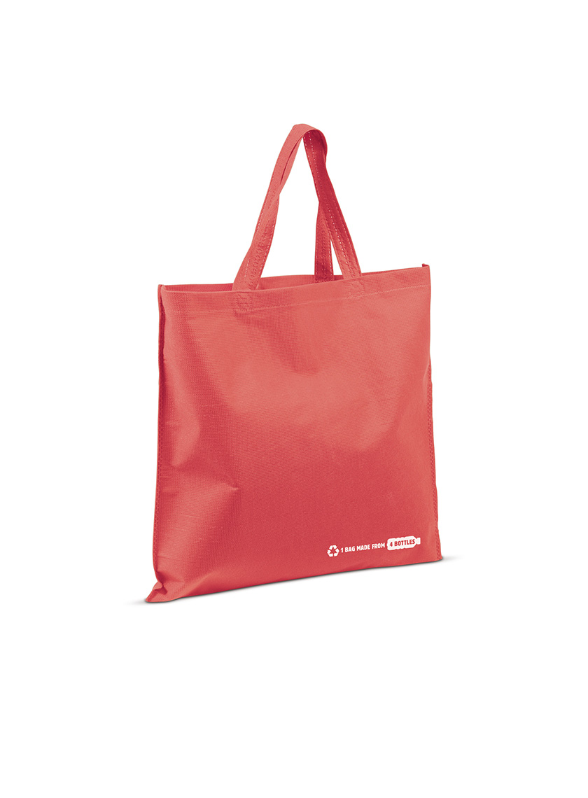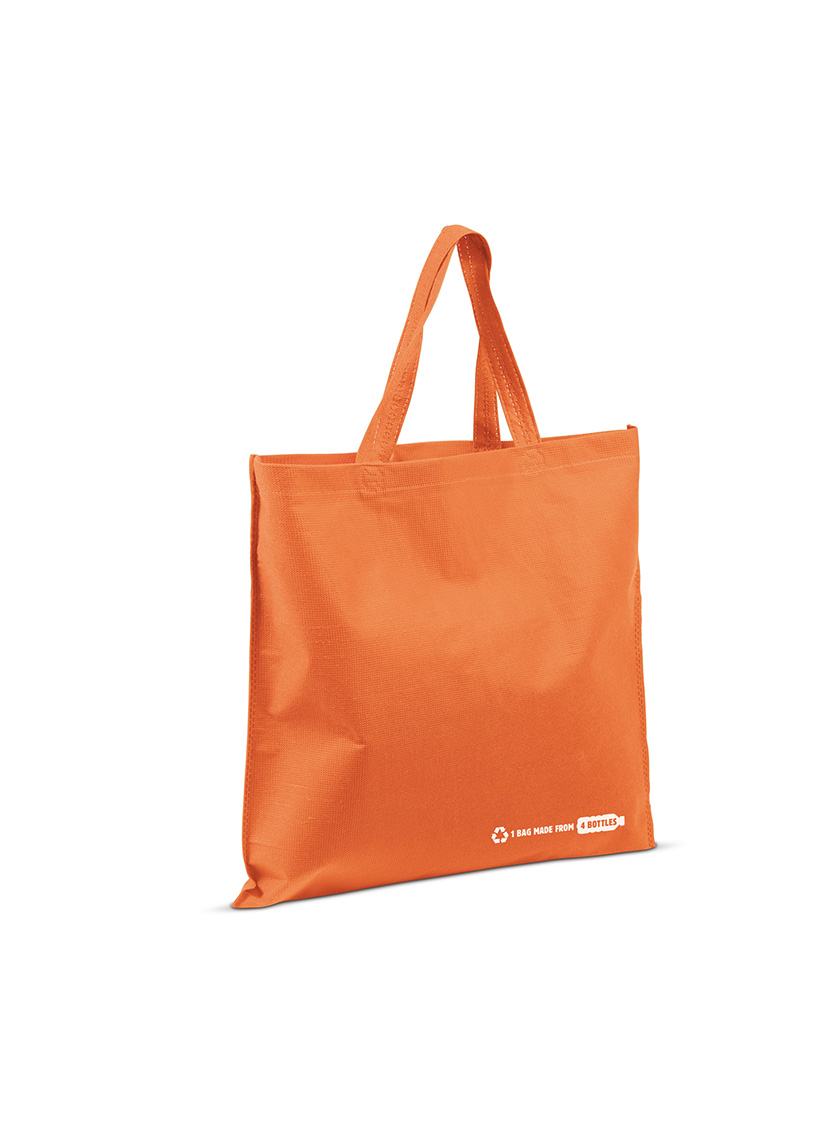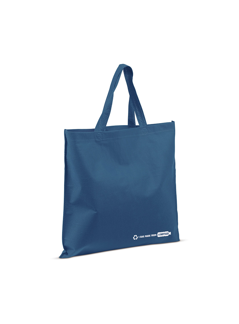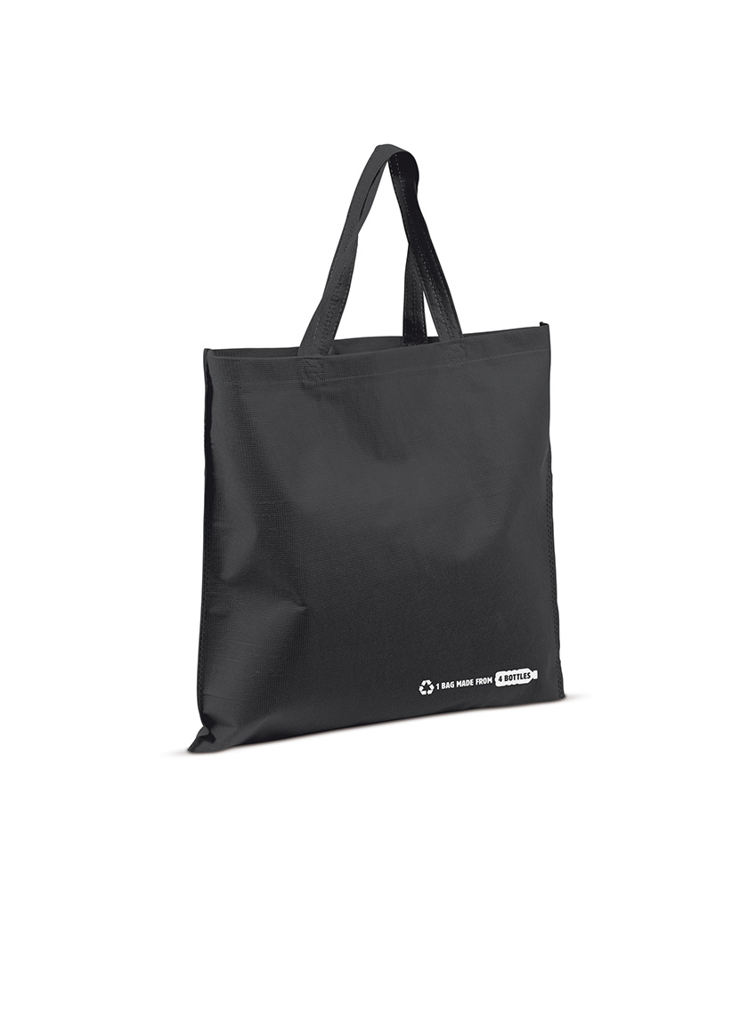 RPET ostoskassi, jonka valmistukseen käytetty kierrätettyjä PET-pulloja. Vähennä jätettä käyttämällä tätä laukkua. Koko 38x42cm.