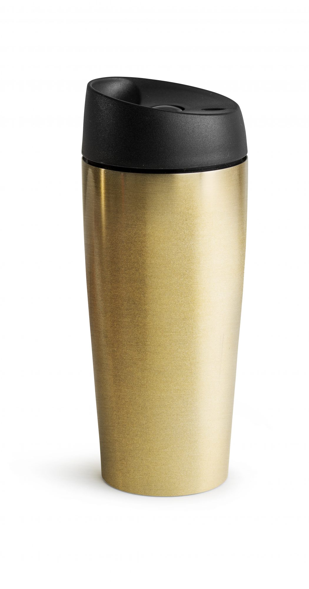 Tyylikkäästä automukista voit nauttia lämmintä juomaa missä tahansa, Lämpöä hyvin pitävään kaksiseinäiseen termosmukiin mahtuu 40 cl lempijuomaasi!