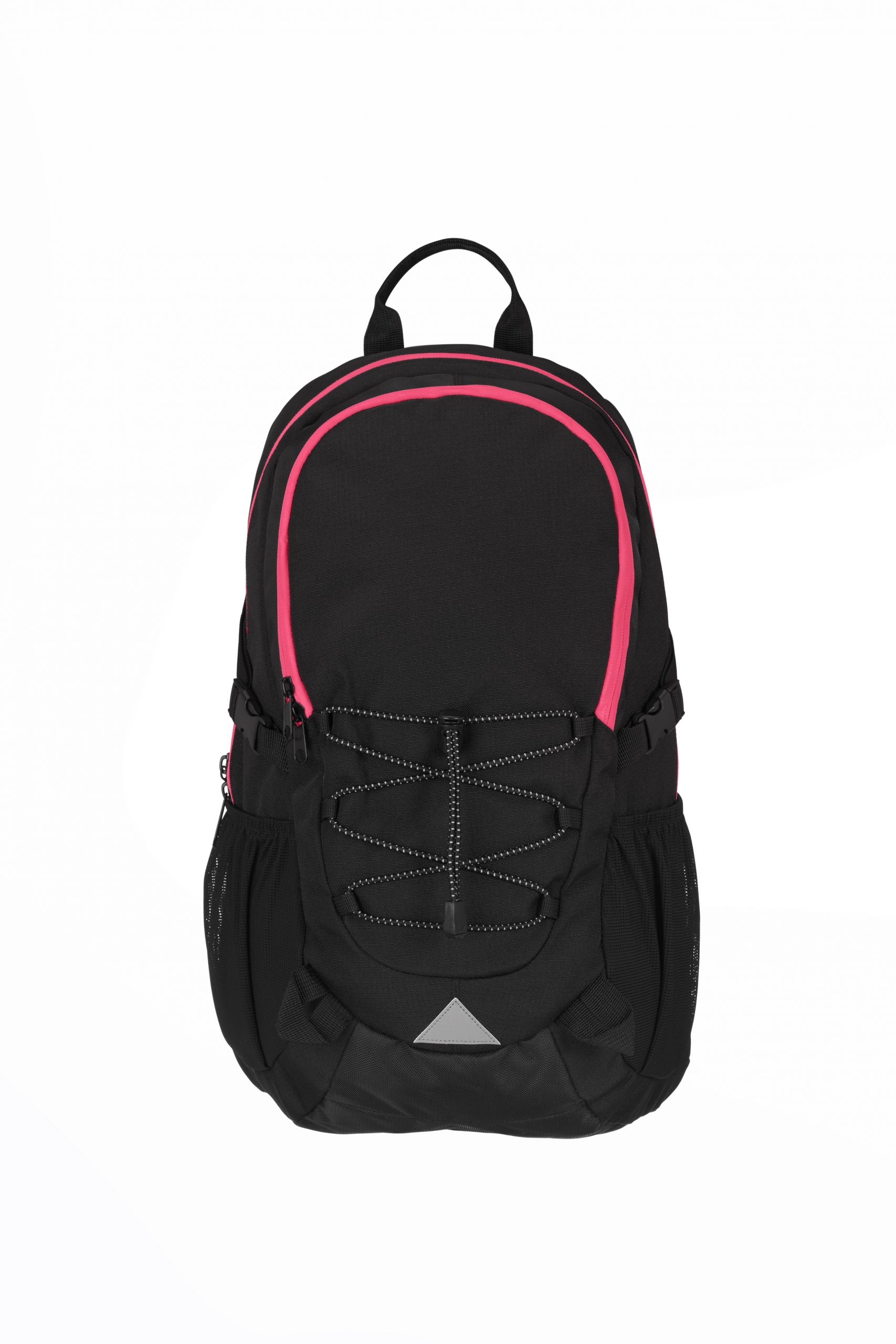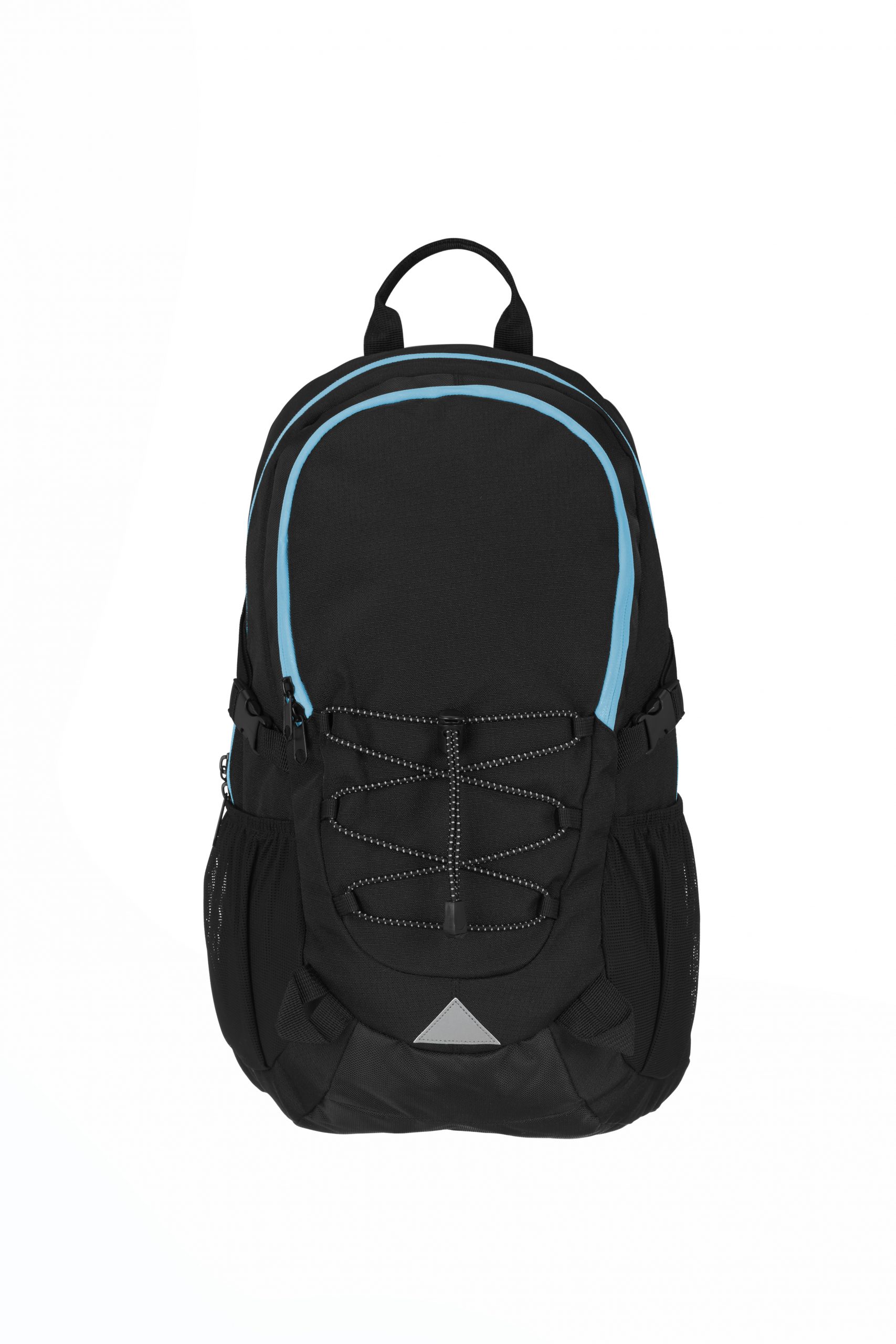 Kontrastiväreillä tyylitelty selkäreppu. Päälokerossa suuri sisätasku. Etutaskussa lisäksi pienempi sisätasku sekä avainpidike. Tuulettuva vahva selkäpehmuste. Muotoillut olkainhihnat jossa rintaremmi. Heijastavat yksityiskohdat edessä ja olkahihnoissa.