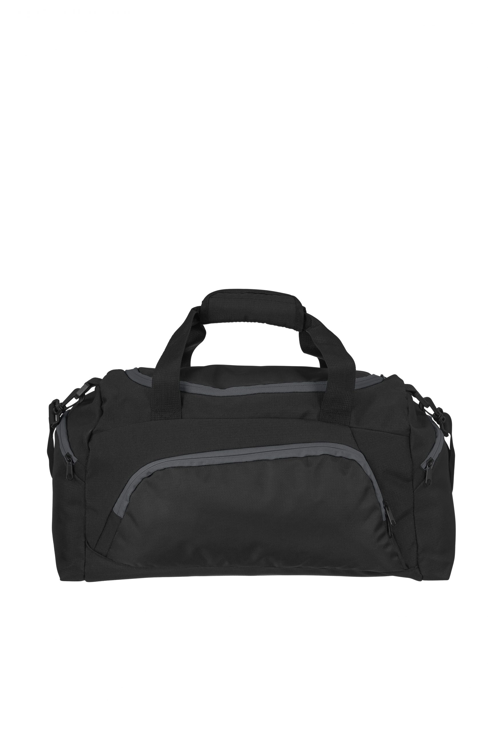 Kontrastiväreillä tyylitelty sporttikassi etutaskulla ja usealla sivutaskulla. Pehmustettu kantokahva sekä säädettävä ja irroitettava olkaremmi.