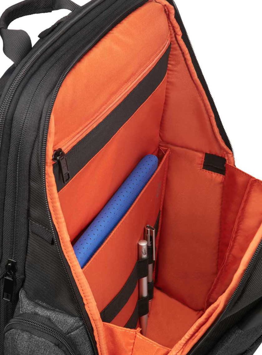 Bleisure tietokonereppu on muodikkaan näköinen ja kätevä tietokone laukku. Laukussa on suuri sisäosa päivän tavaroille, papereille ja vaatteelle. Easy Pass mahdollistaa johtojen kulun läpi laukun eri osastojen, pitäen elektroniikkalaitteet latauksessa ilman ottamatta niitä ulos.