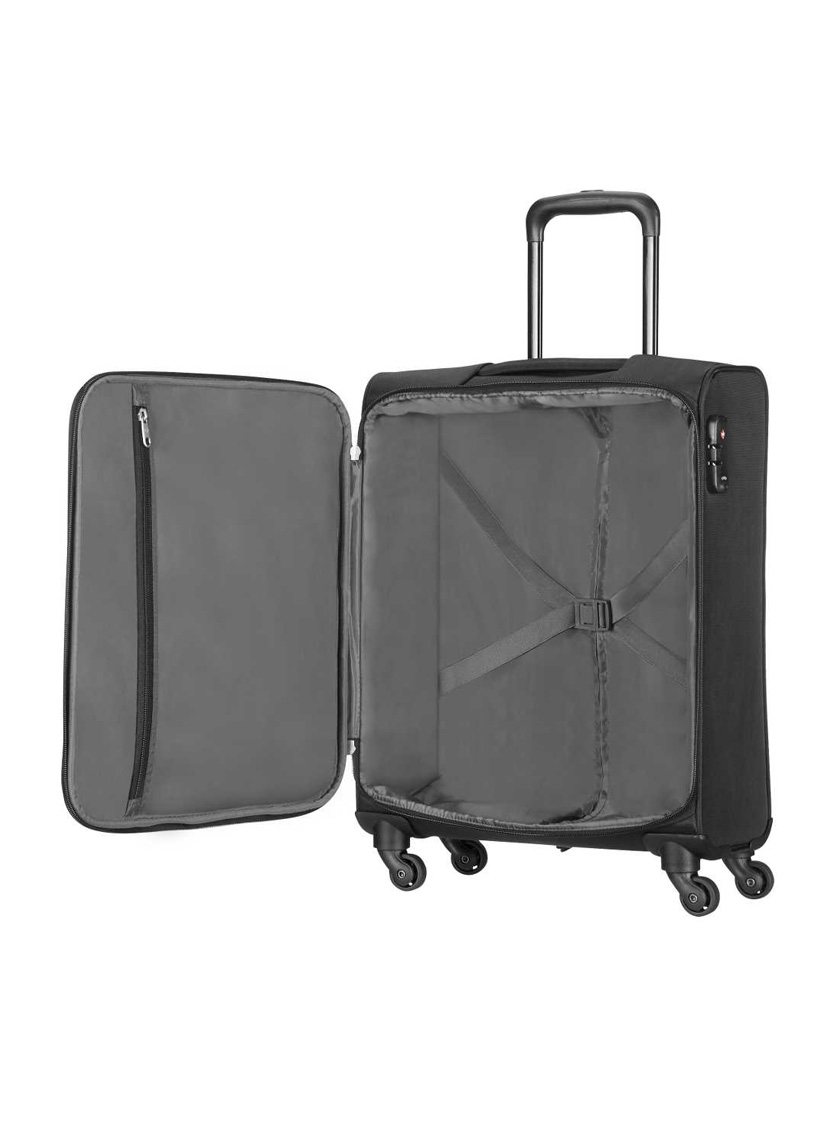 Illustro Spinner 55 lentolaukku on businessmatkailijan luottolaukku. Musta laukku. Hyvin merkattavissa oleva malli. Neljä ympäripyörivää pyörää. TSA-lukko. 2,4 kg. Viiden vuoden takuu.