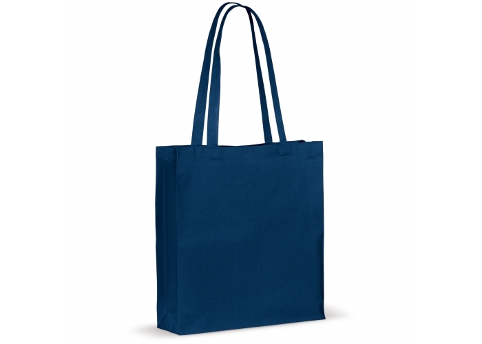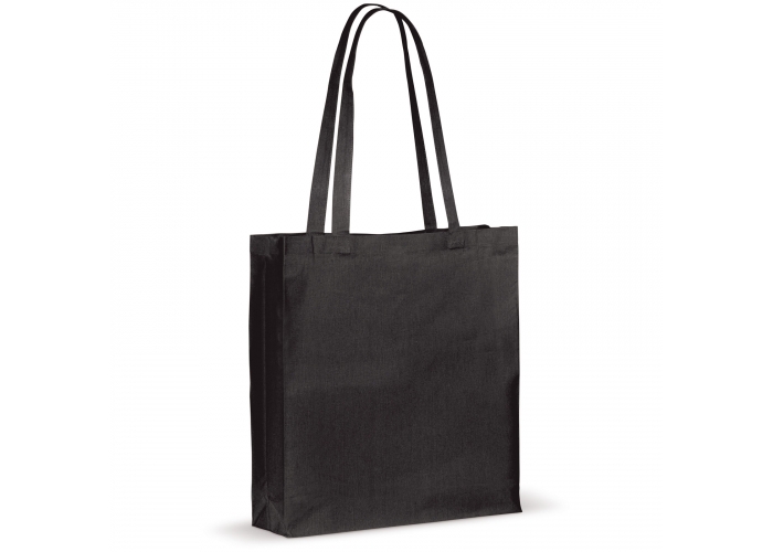 Klassinen valkaisematon puuvillainen olkalaukku – jossa kulmatuet – on erinomainen mainostuote. Ökotex-sertifiointi kertoo kestävän kehityksen valinnasta.