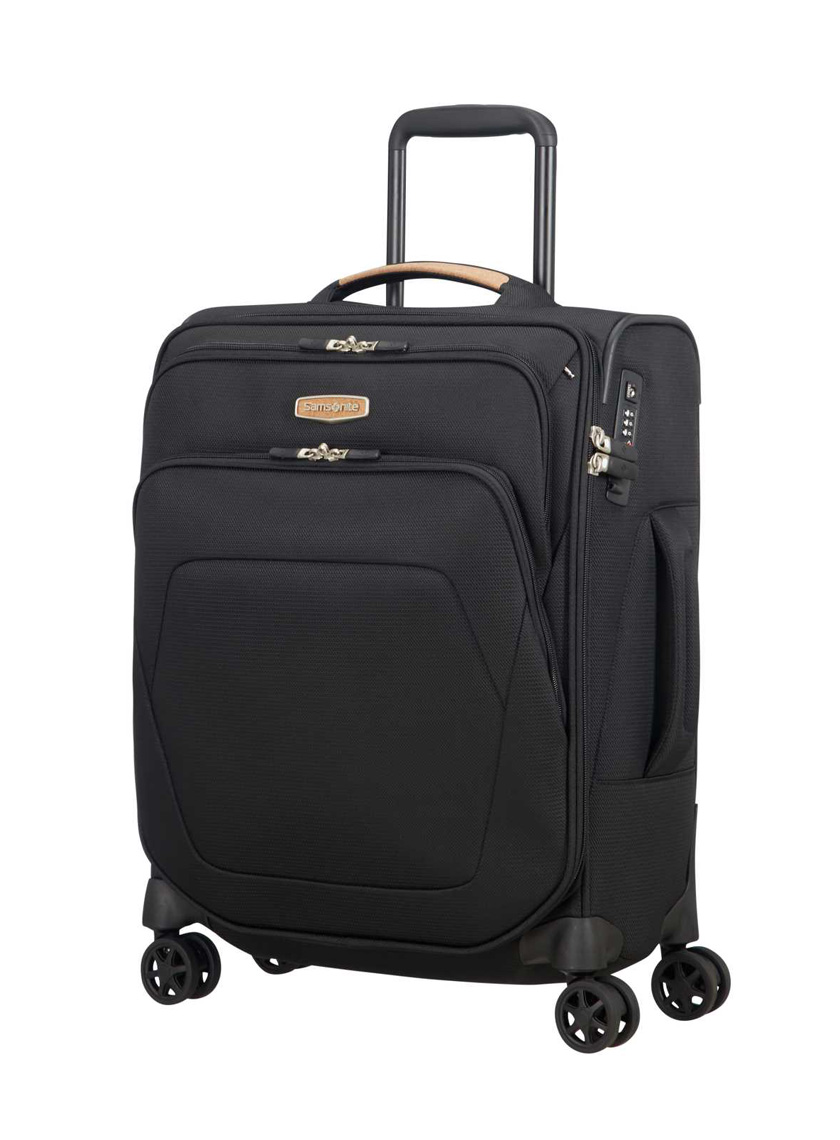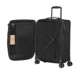 Samsonite Spark SNG ECO lentolaukun kangasmateriaali on valmistettu 100% kierrätetyistä PET muovipulloista. Matkalaukun nostokahvat sekä logo on valmistettu korkkimateriaalista tehden laukusta entistäkin ekologisemman. Materiaalin ollessa ekologinen se on myös erittäin hyvin kulutusta kestävä ja kevyt. Tilavuus 38l. Moneen suuntaan pyörivät pyörät. 5 vuoden takuu.