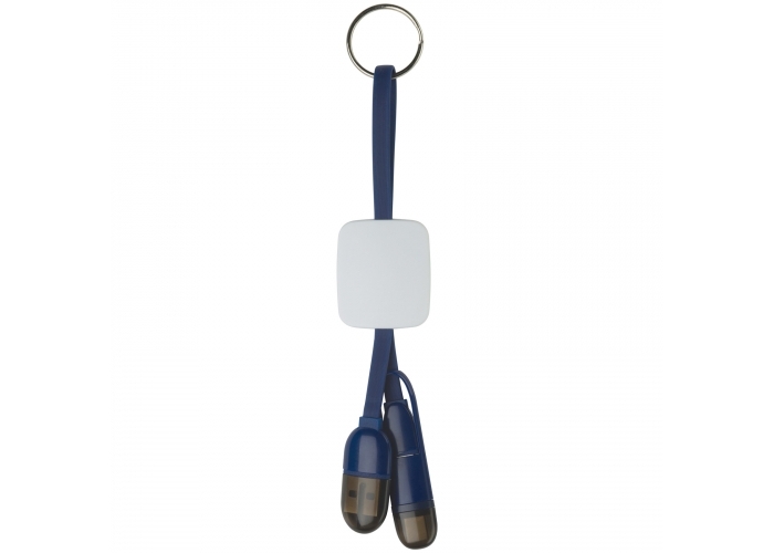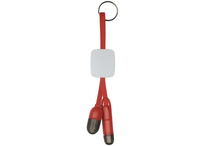 Avaimenperä, joka sisältää USB, micro USB ja Type C ominaisuudet. Näppärä laite. Painatus valkoiseen neliöön.