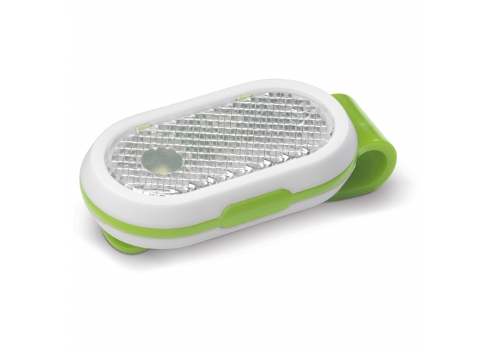 Helposti kiinnitettävä ja käytännöllinen lamppu vaatteisiin ja reppuun. Voidaan käyttää myös pyörän etu- tai takavalona.