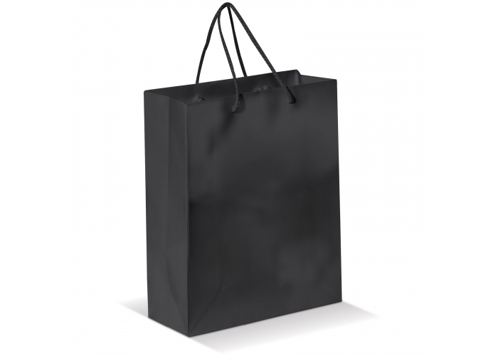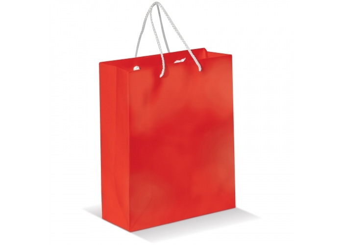Keskikokoinen paperikassi 200g/m2, jossa narukahvat. Kiiltävä laminointi. Vain 1-värinen painatus per puoli.