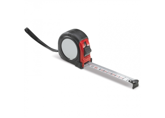 5 metrin rullamitta, jonka saa kiinnitettyä esimerkiksi vyöhön mitan takana olevalla koukulla.