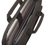 Pehmustettu ja mukautuva tietokoneosasto suojaa kannettavaa ja pitää paikallaan. Isossa osastossa tasku asiakirjoille.