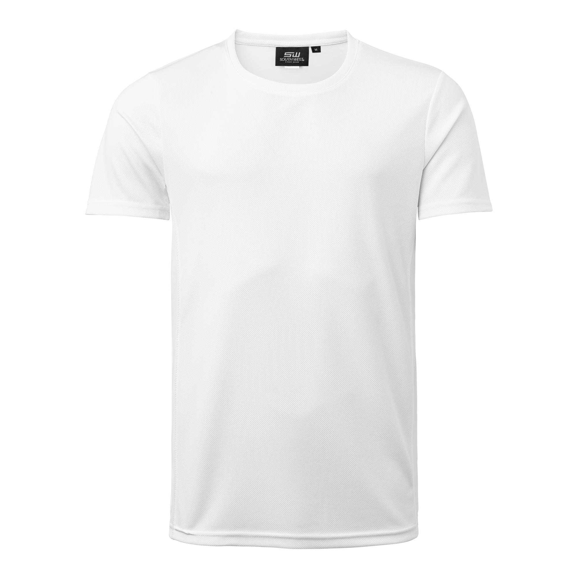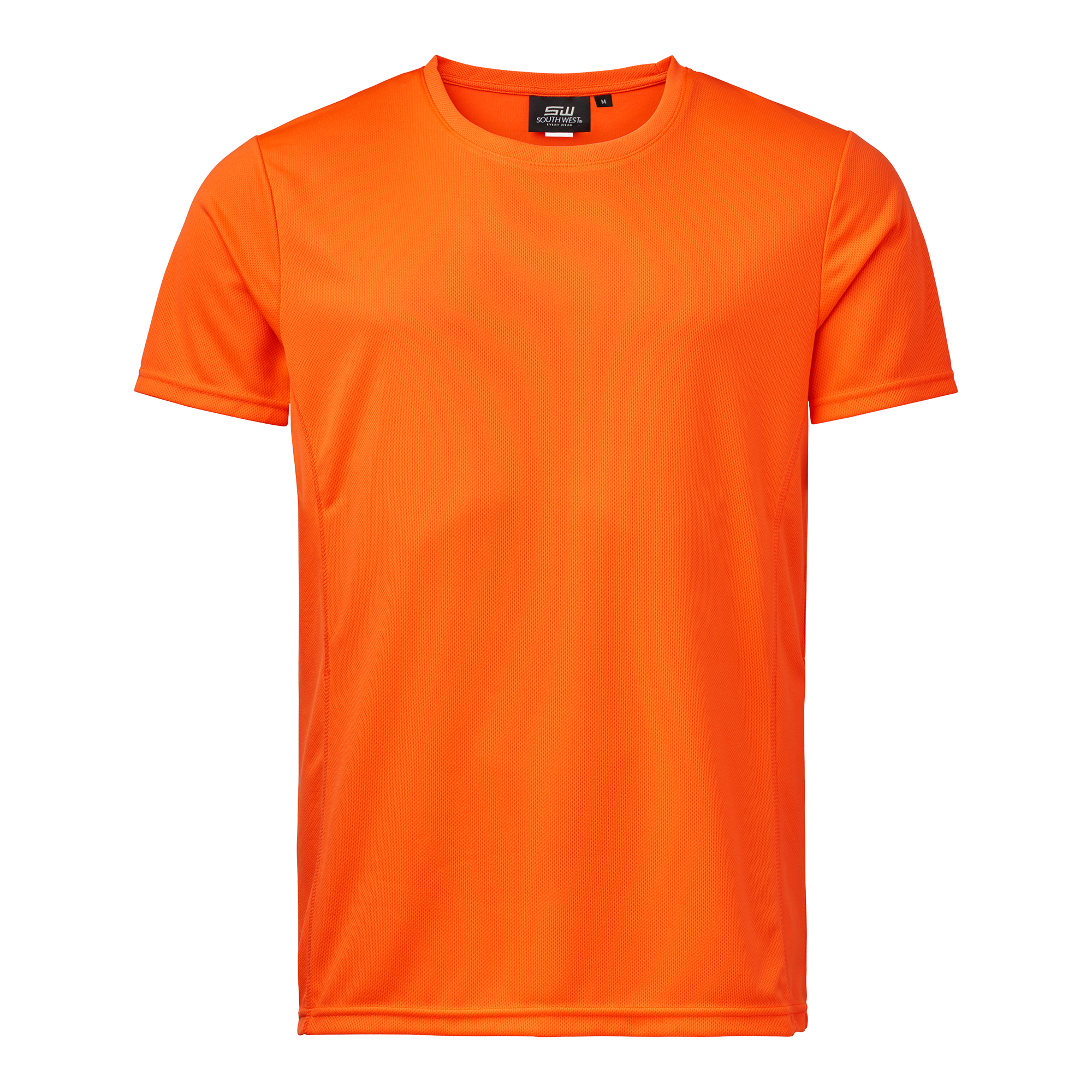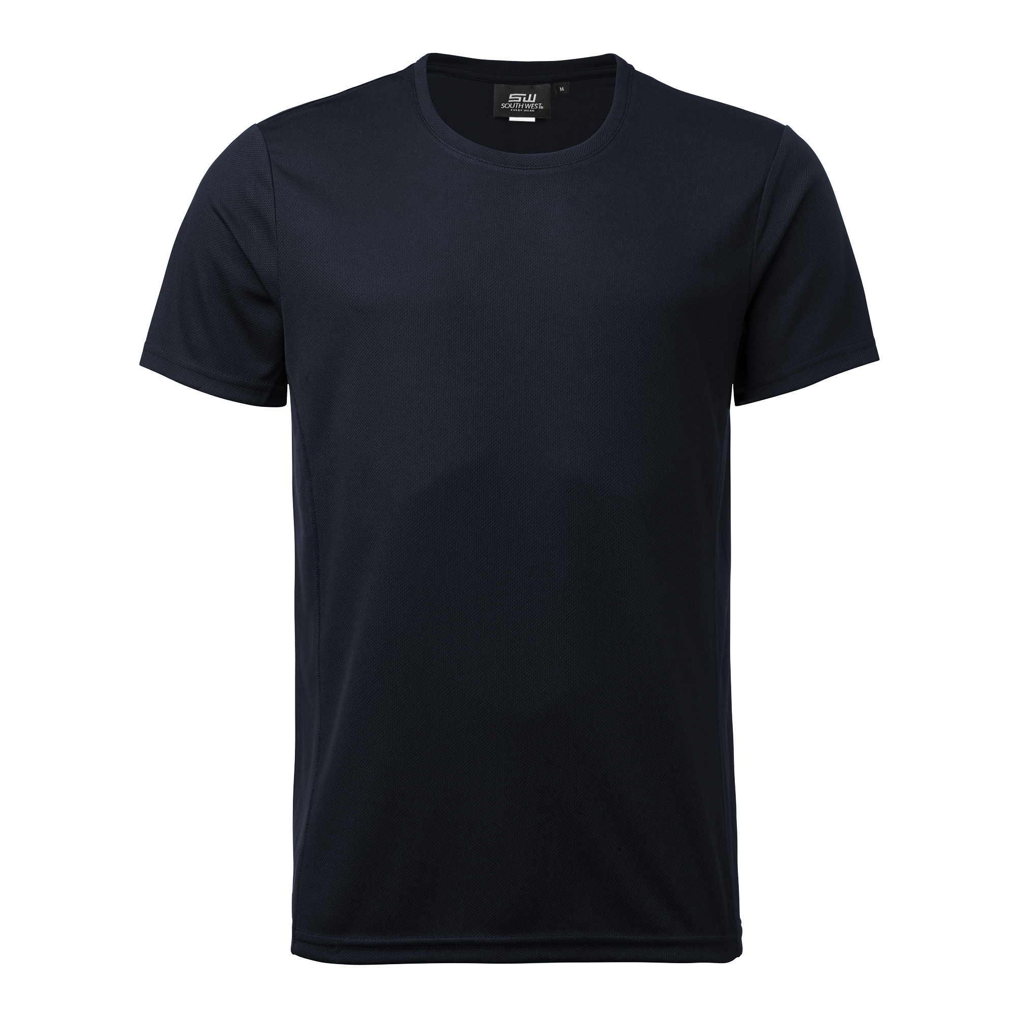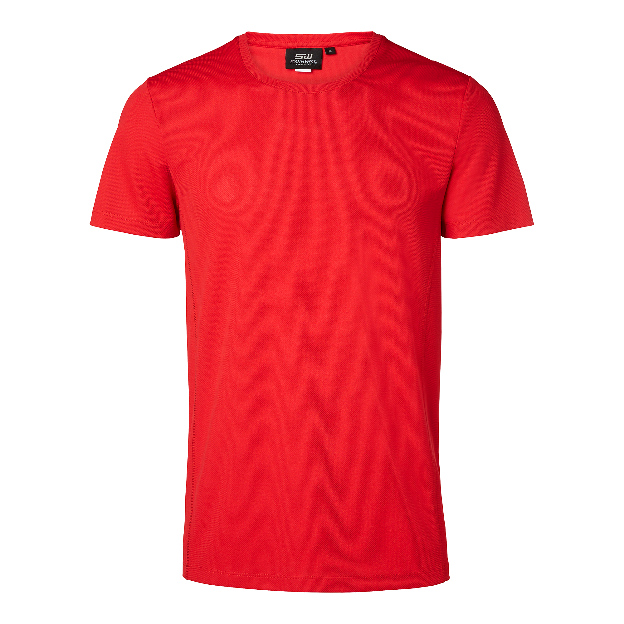 Tekninen t-paita 100 % kierrätetystä polyesteristä, jossa väriin sointuvat tasosaumat. Nopeasti kuivuvaa materiaalia, joka kuljettaa kosteuden pois iholta.