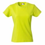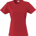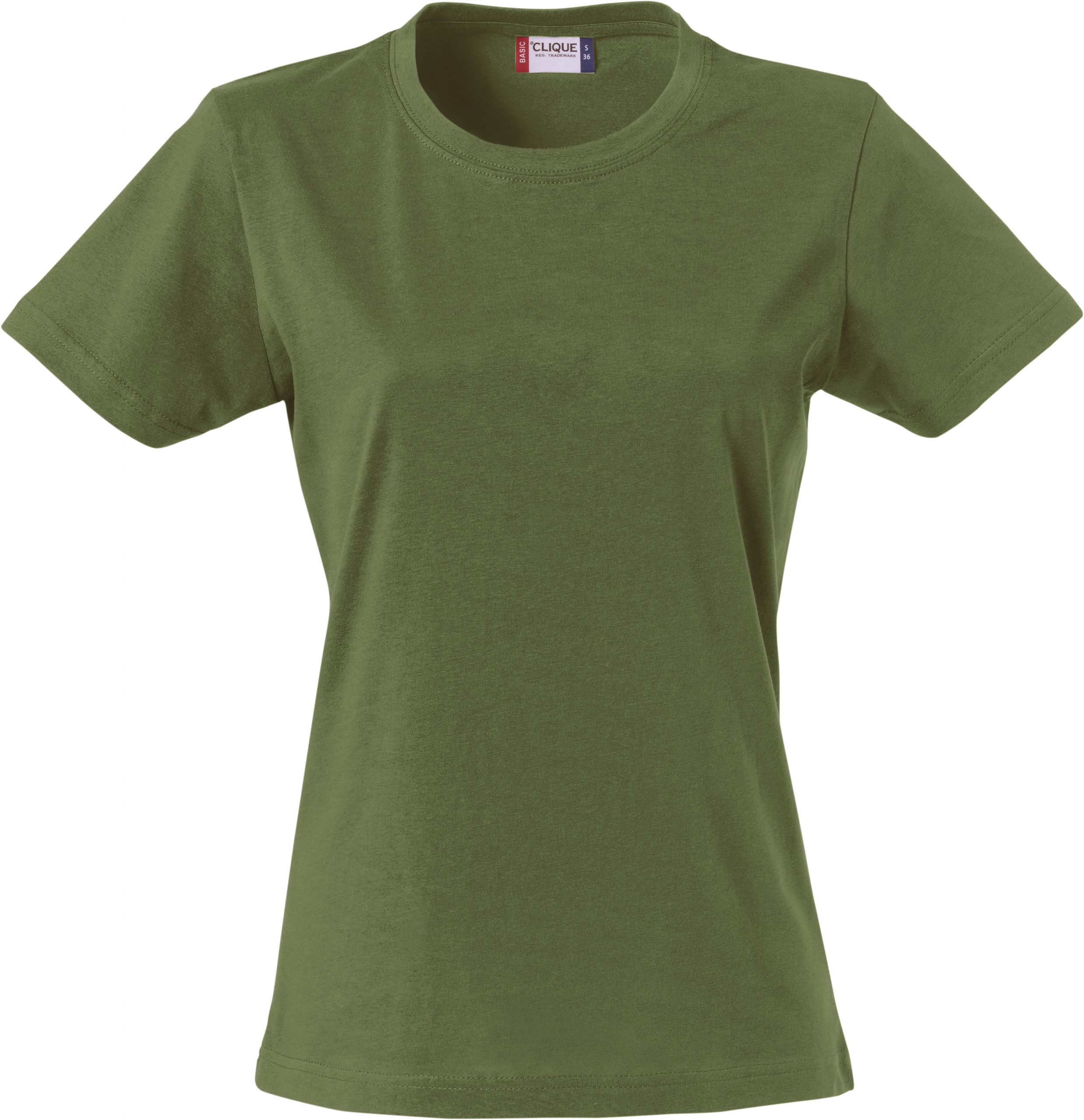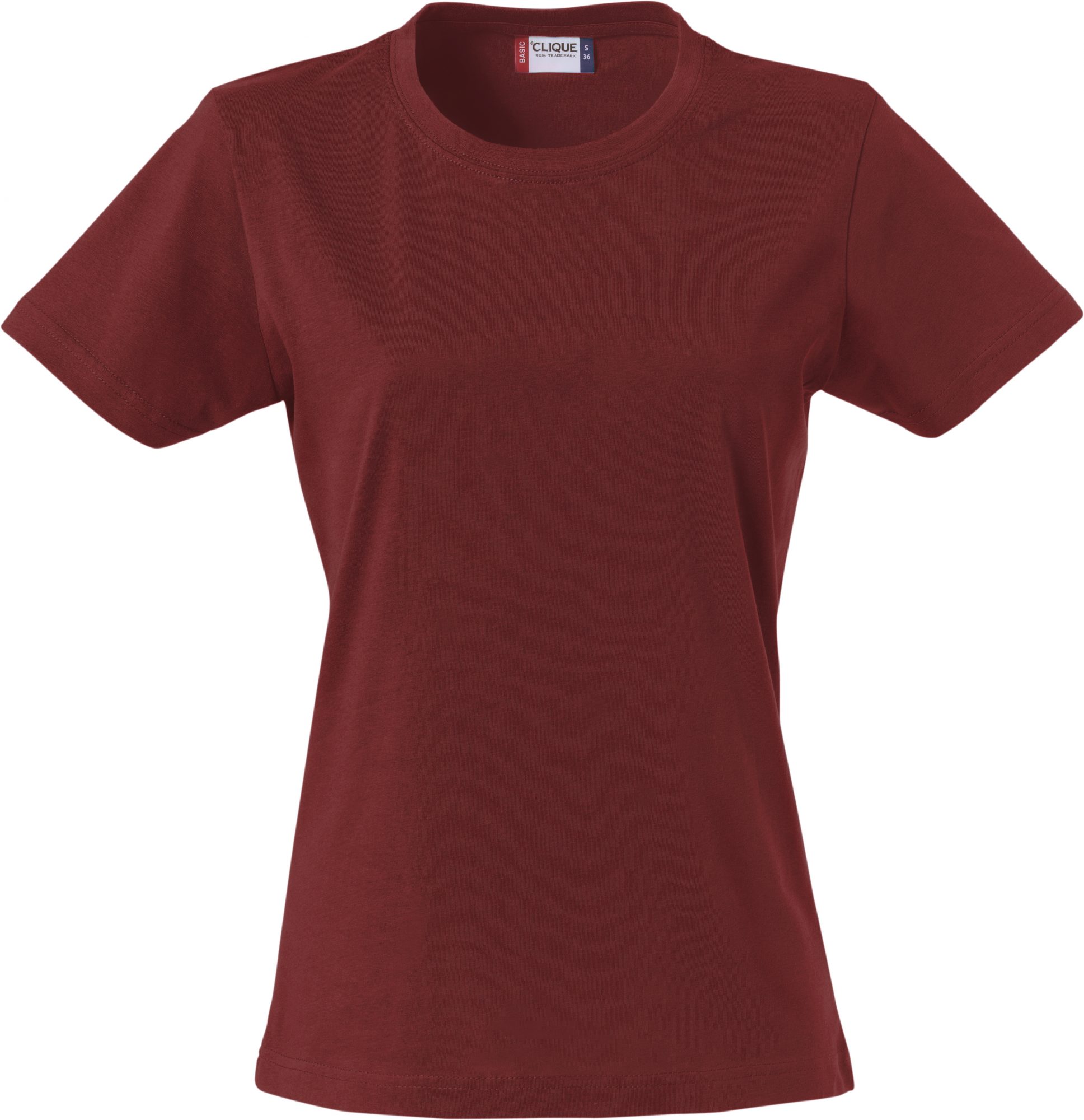 Naisten malli suositusta Basic t-paidasta. Joustava kaulusresori ja sivusaumat.
