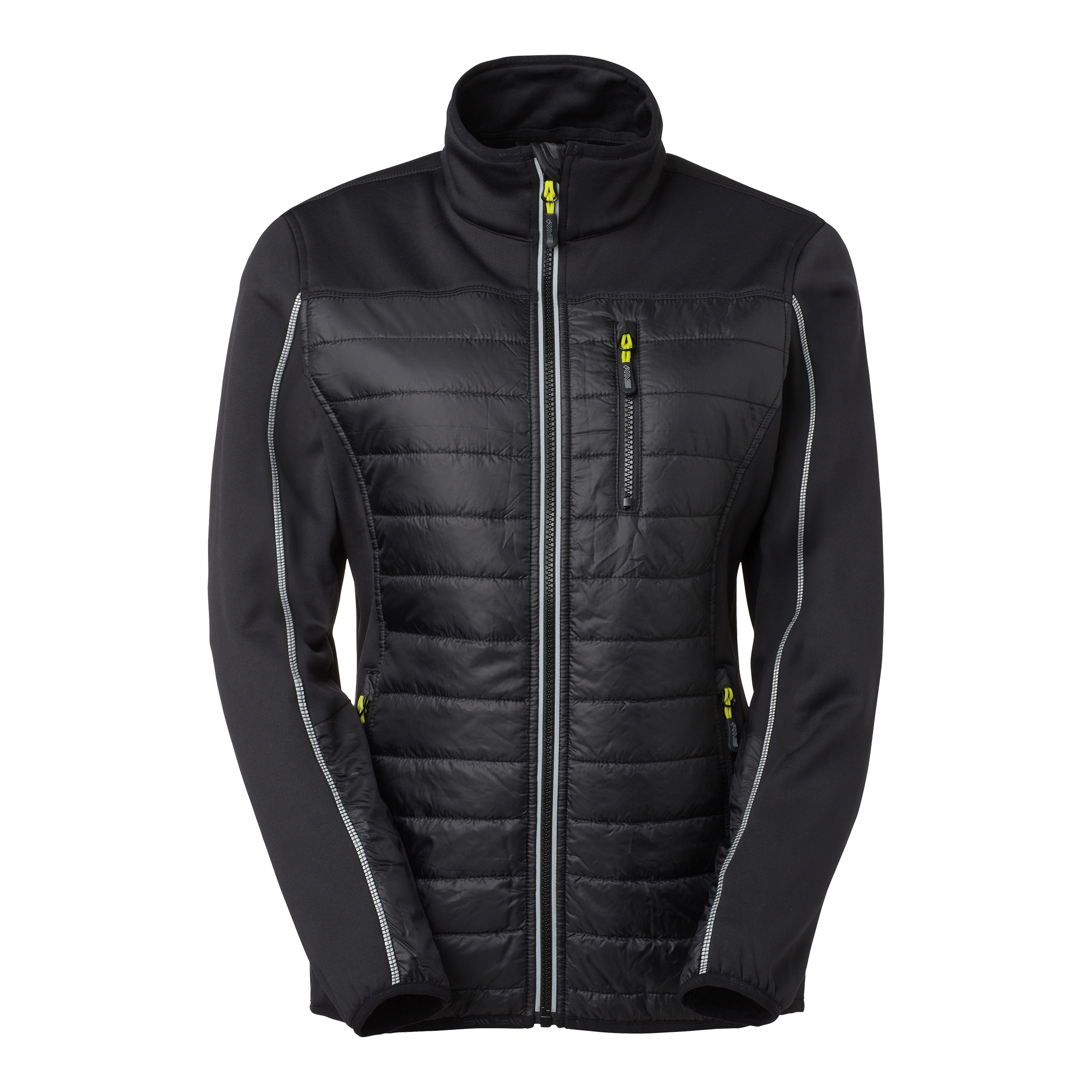 Naisten powerstretch-takki joustavaa materiaalia. Etupuoli on kevyesti topattua nailonia. Kaikki vetoketjut ja vetimet ovat tehosteväriset. Helmassa, hihansuissa ja kauluksessa joustava nauha, jossa SW-kuumapainatus.