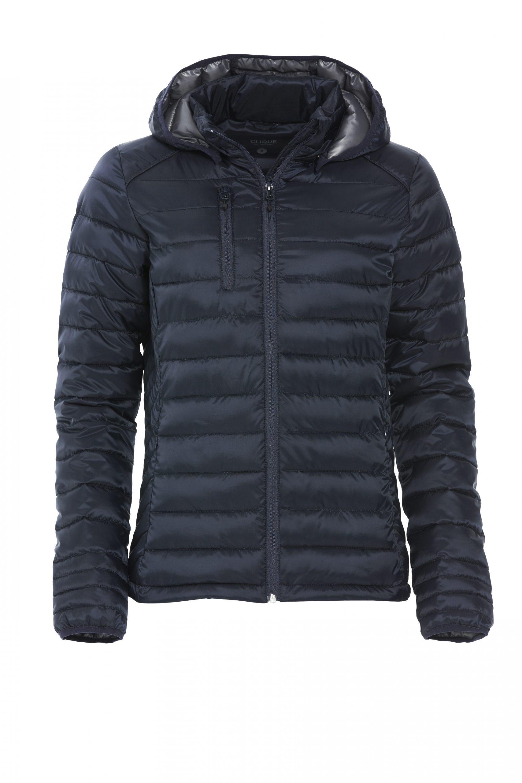 Naisten moderni takki, jossa tekountuvatoppaus. Irrotettava huppu, 3 vetoketjullista ulkotaskua ja 2 sisätaskua. Kauluksessa lenkki kuulokejohdolle.