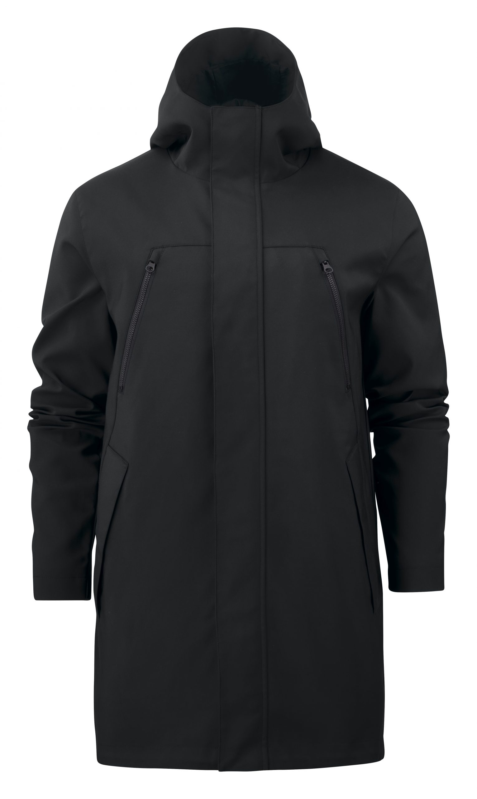 Hyvä istuvuus ja sopiva pituus alla pidettävälle puvulle. Takissa vettä hylkivä pintamateriaali.