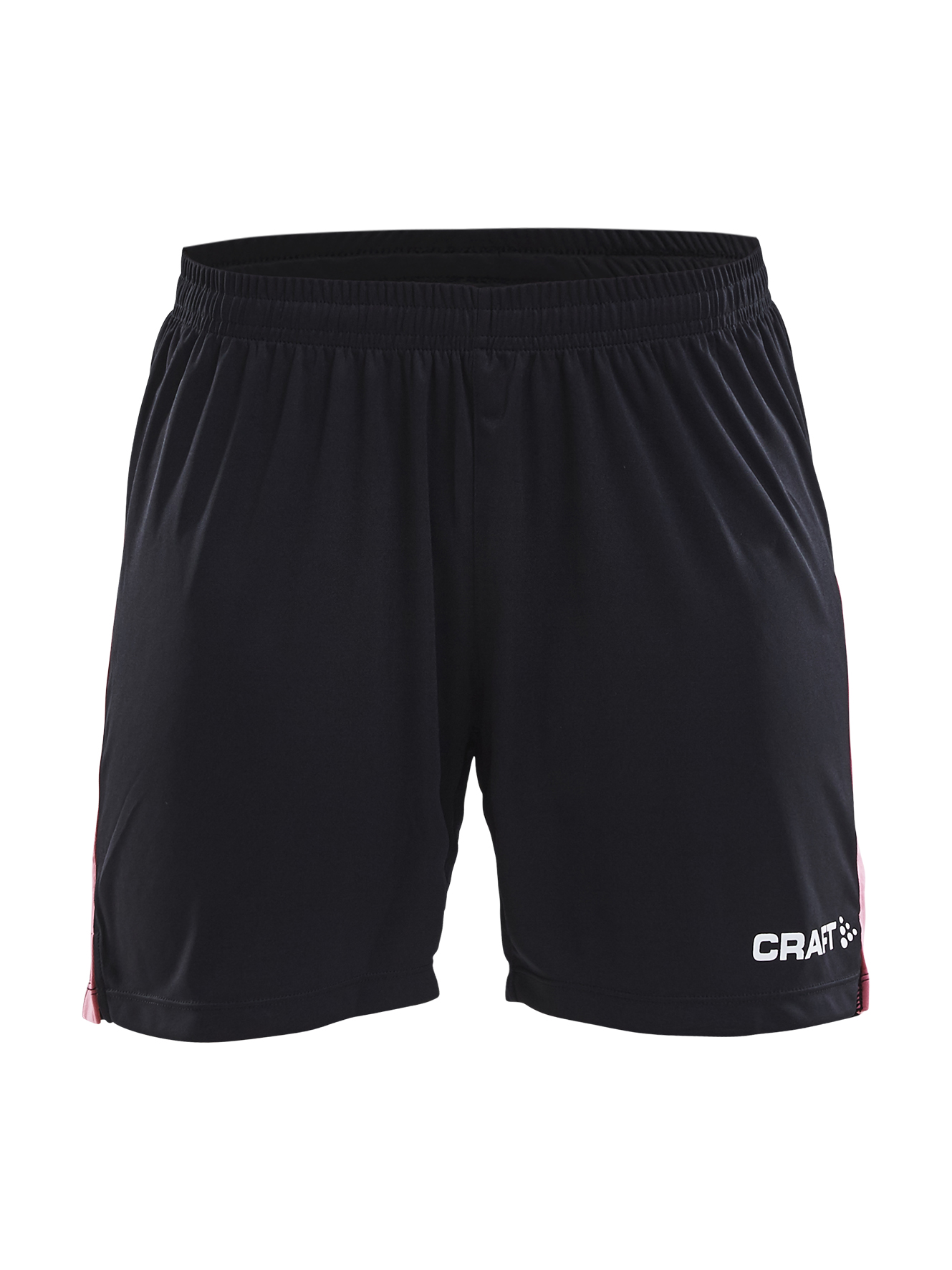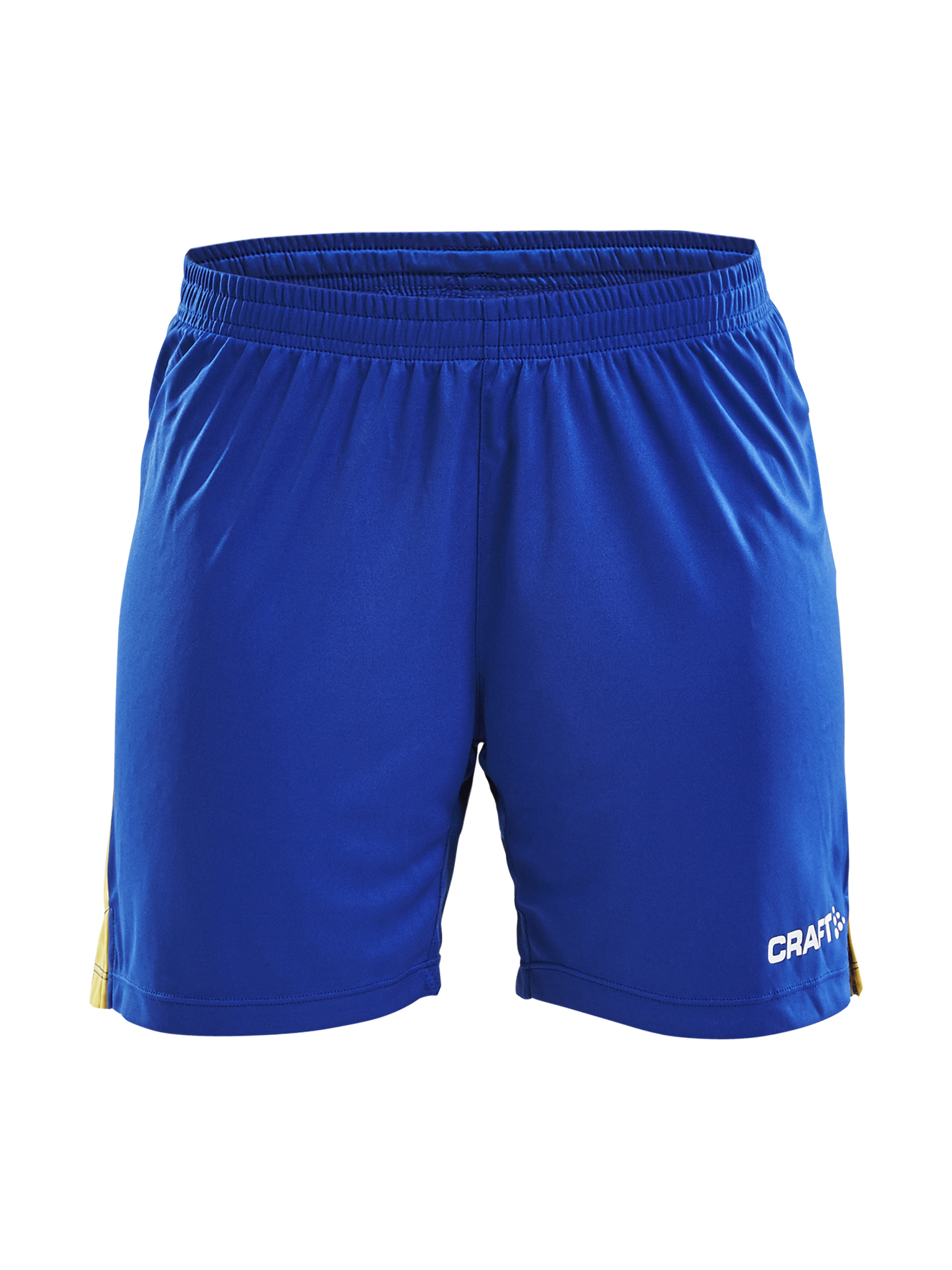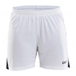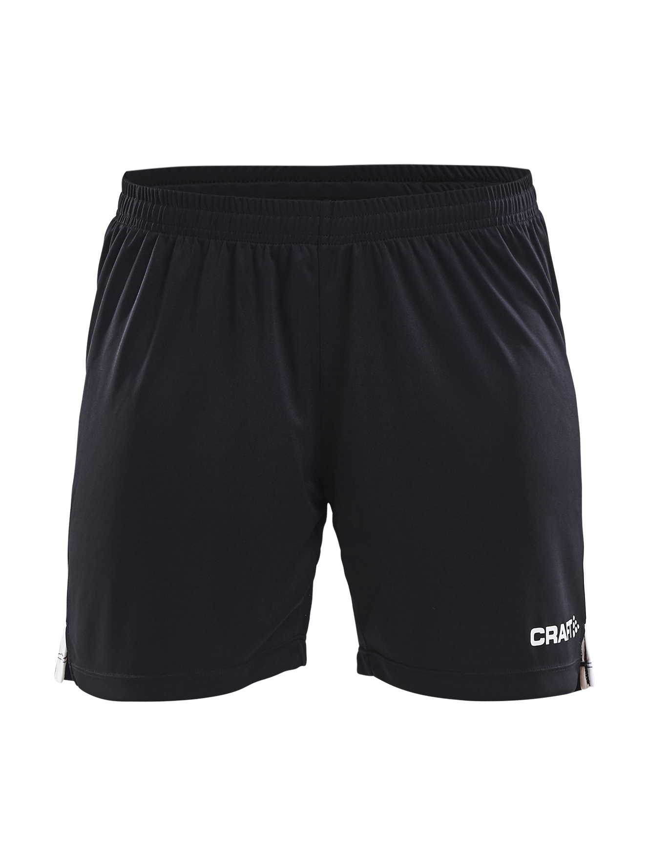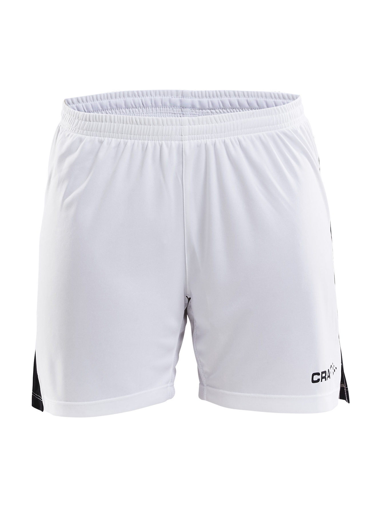 Naisten peli-/treenishortsi kontrastivärisillä sivuilla ilman taskuja.