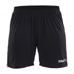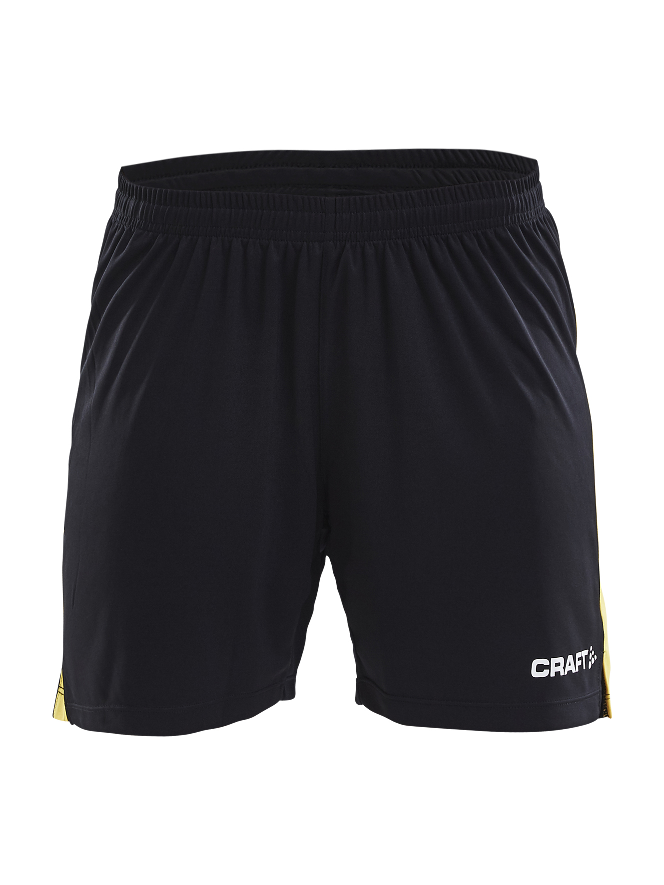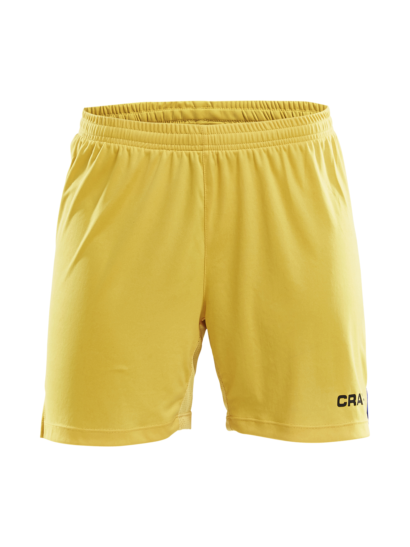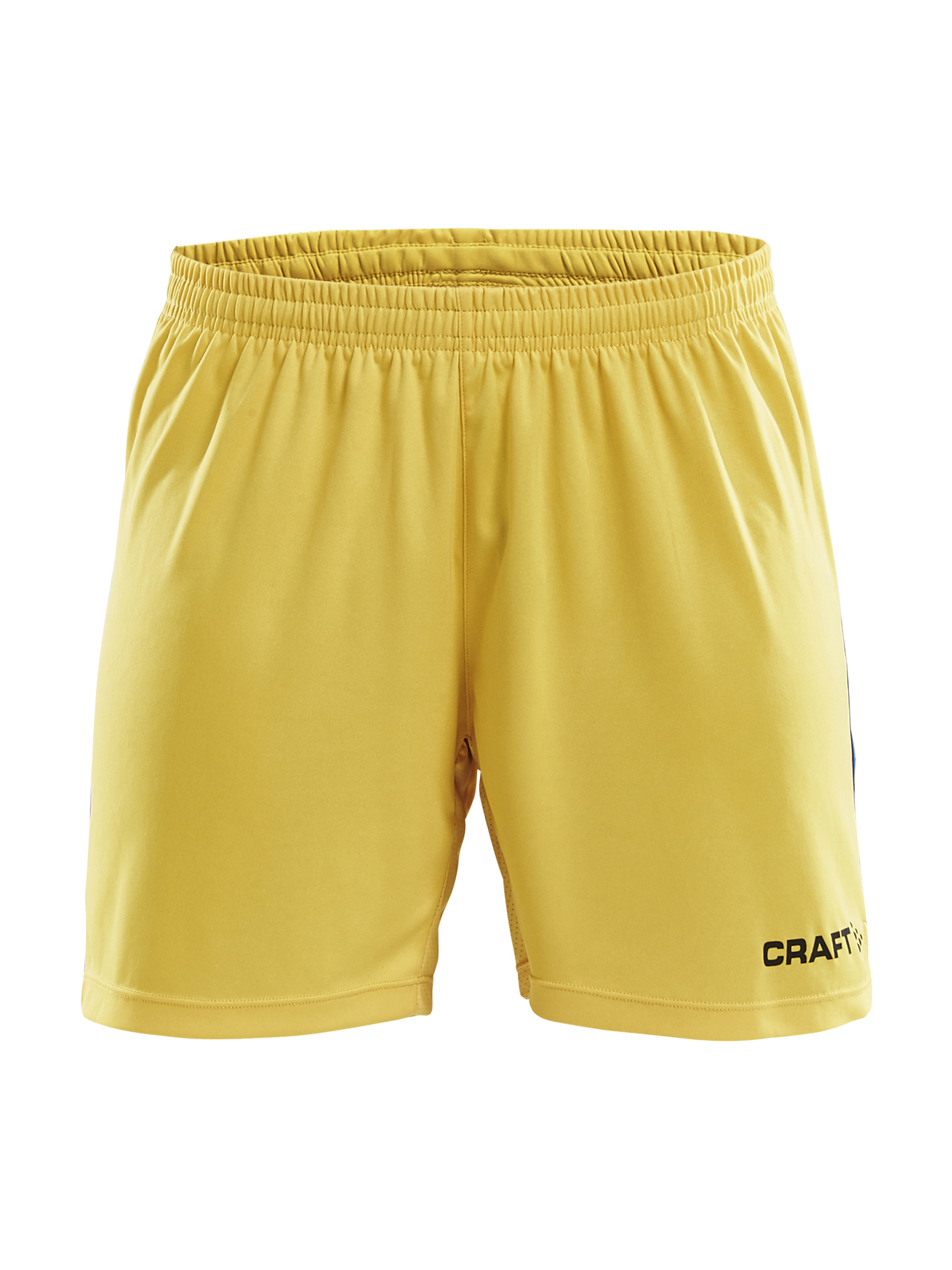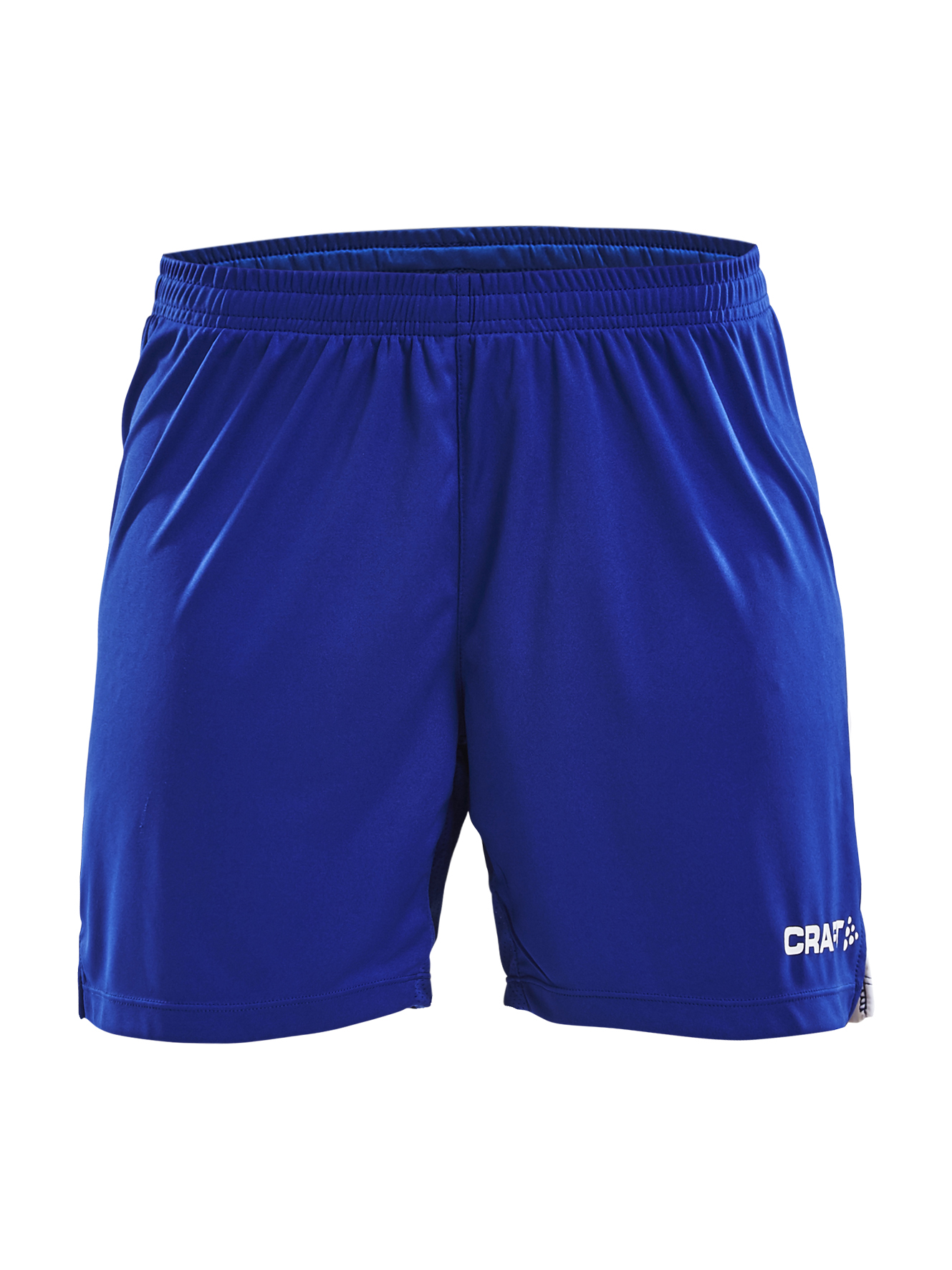 Naisten peli-/treenishortsi kontrastivärisillä sivuilla ilman taskuja.
