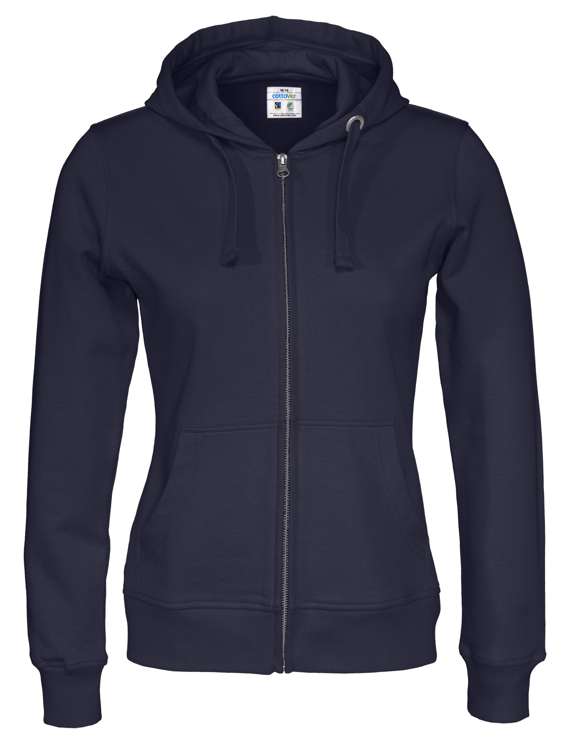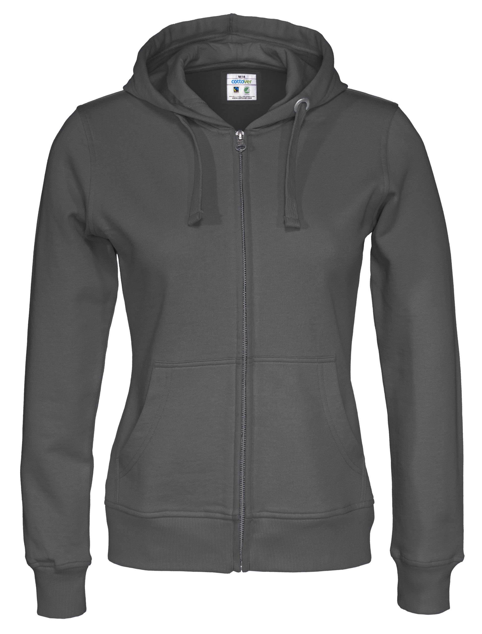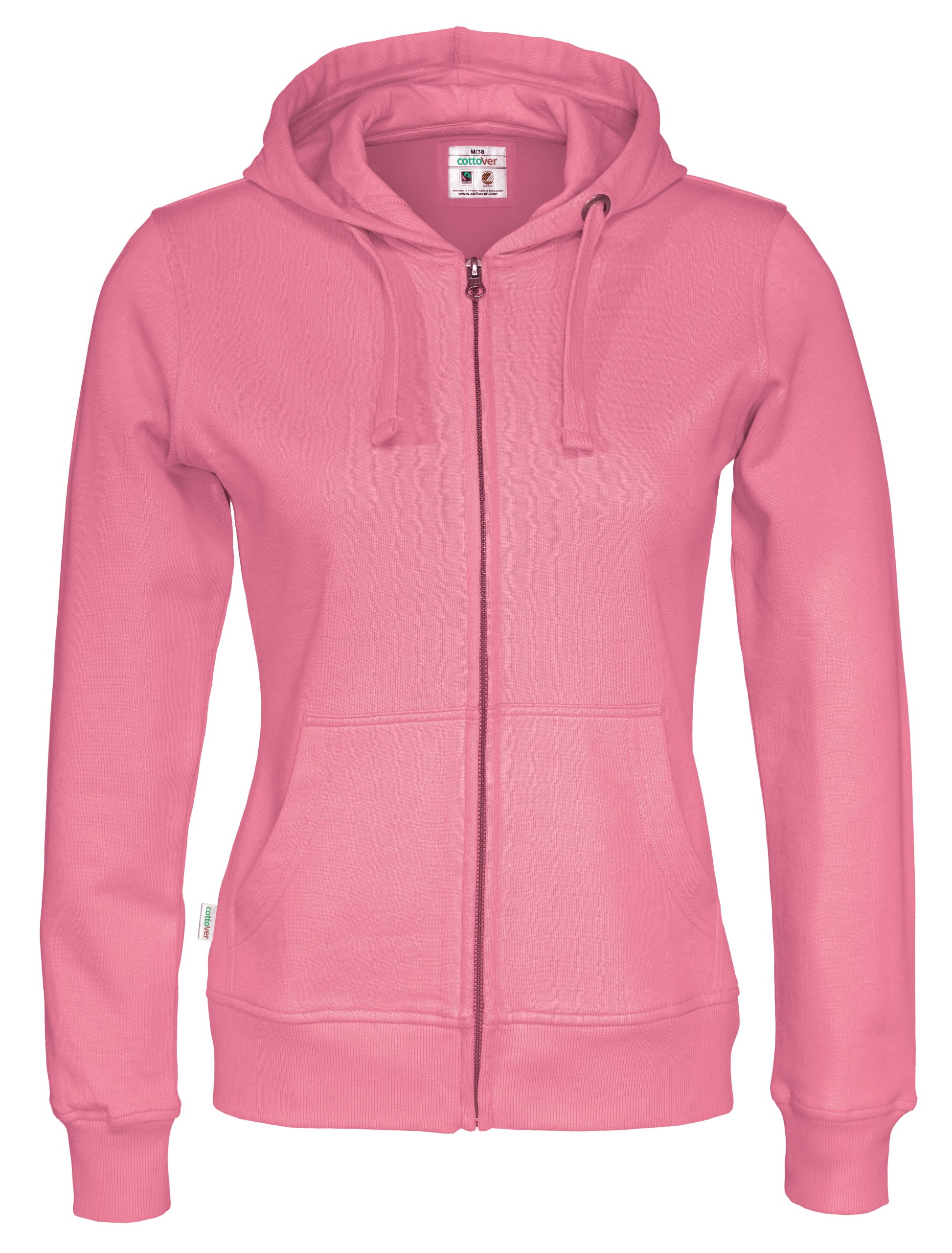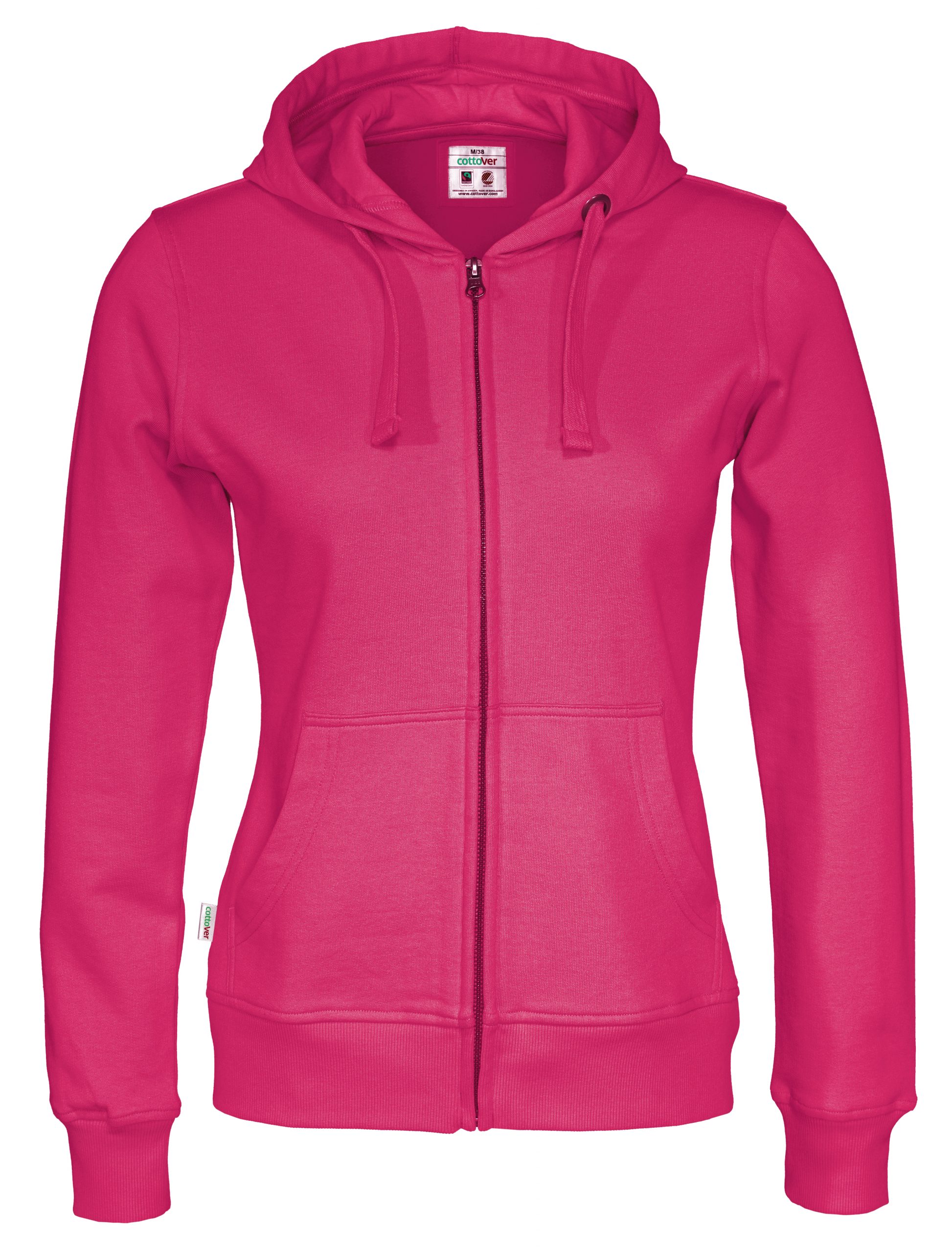 Naisten ekologinen vetoketjuhuppari upeissa väreissä. 80% Reilunkaupan luomupuuvillaa, 20% kierrätettyä polyesteriä
