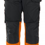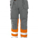 Kaksi taskuun työnnettävissä olevaa riipputaskua, toisessa lisätaskuja ja toisessa lenkit työkaluille. Riipputaskut on vahvistettu 100 % polyamidilla. Reisitaskuissa paikat puhelimelle, kynälle ja työkaluille. Kaksi säädettävää vasaralenkkiä. Kaksi D-lenkkiä. Mittatasku, jossa työkalutasku ja puukkonappi. Sisältä avattavat polvitaskut polyamidia, säädettävä polvisuojan korkeus. Muotoillut polvet. Jalan takapuolella polyamidivahvike. Suuret takataskut. Taka- ja reisitaskuissa on lenkit Inbag-taskuille. EN471-LUOKKA 1.