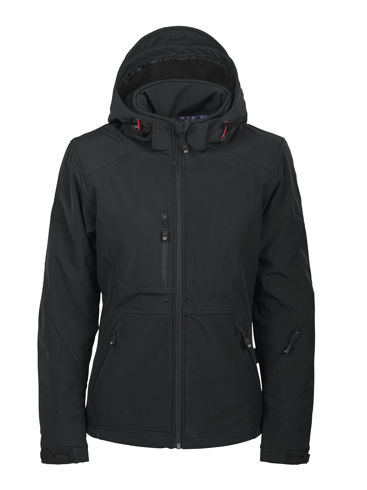 Takissa on irrotettava huppu, vetoketjulliset taskut edessä ja hihassa sekä helmassa joustava lukkokiristin. Hihoissa on tarranauha kiristys sekä sisäpuoliset resorit. Takin sisäpuolella on vetoketjullinen kännykkätasku, kuminen kuuloke plug-in sekä iso ja käytännöllinen povitasku.