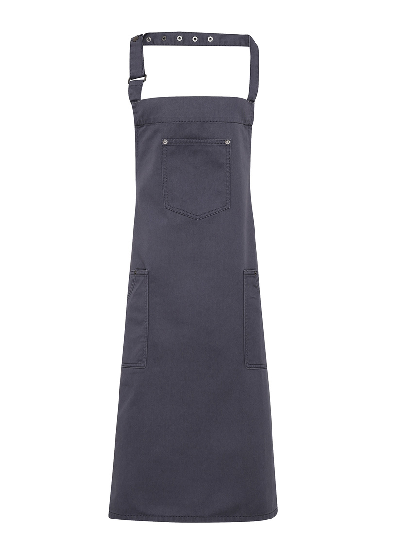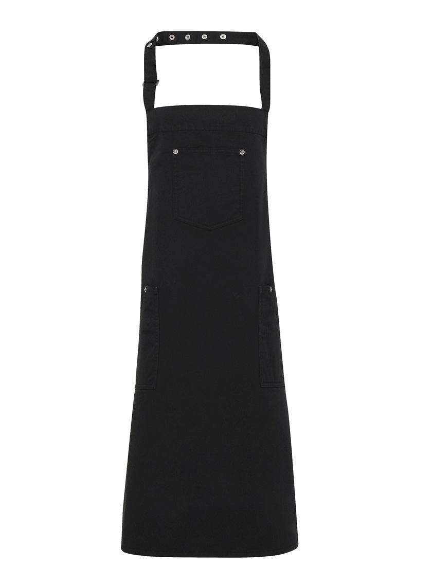 Chino essu, jossa niittisomisteiset taskut sivuilla ja edessä. Säädettävä niskanauha. Materiaali: 100 % puuvillatwilliä. Leveys 72 cm, pituus 86 cm. Laitospesu 85 °C. Kotipesu 60 °C.