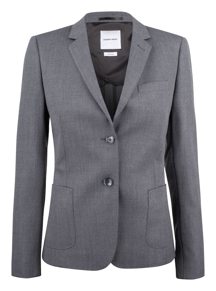 Modernissa Club-bleiserissämme on erittäin pehmeä hartiaosa, räätälöity vyötärö ja puoliksi vuorattu sisäosa. Takissa lovikäänteet, paikkataskut ja sisätasku rinnassa sekä kaksi halkiota takahelmassa. Kankaan rakenne on hieman viimeistelemättömän näköinen ja sopii epävirallisempiin tilanteisiin, mutta on silti tyylikäs. Pue lempifarkkujesi kanssa tai yhdistä klassisten harmaiden housujemme kanssa, niin saat nykyaikaisemman ja virallisemman tyylin. Naisten malli. Värit: 600 t.sininen, 909 meleerattu harmaa, 209 meleerattu ruskea